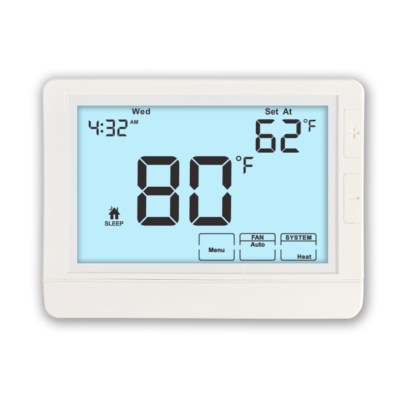 Được sản xuất ở Trung Quốc, bộ điều nhiệt này có màn hình 8,18sq.in rõ ràng với màu đèn nền có thể chọn bao gồm trắng, xanh dương và xanh lá cây,đảm bảo dễ đọc trong các điều kiện ánh sáng khác nhau.
